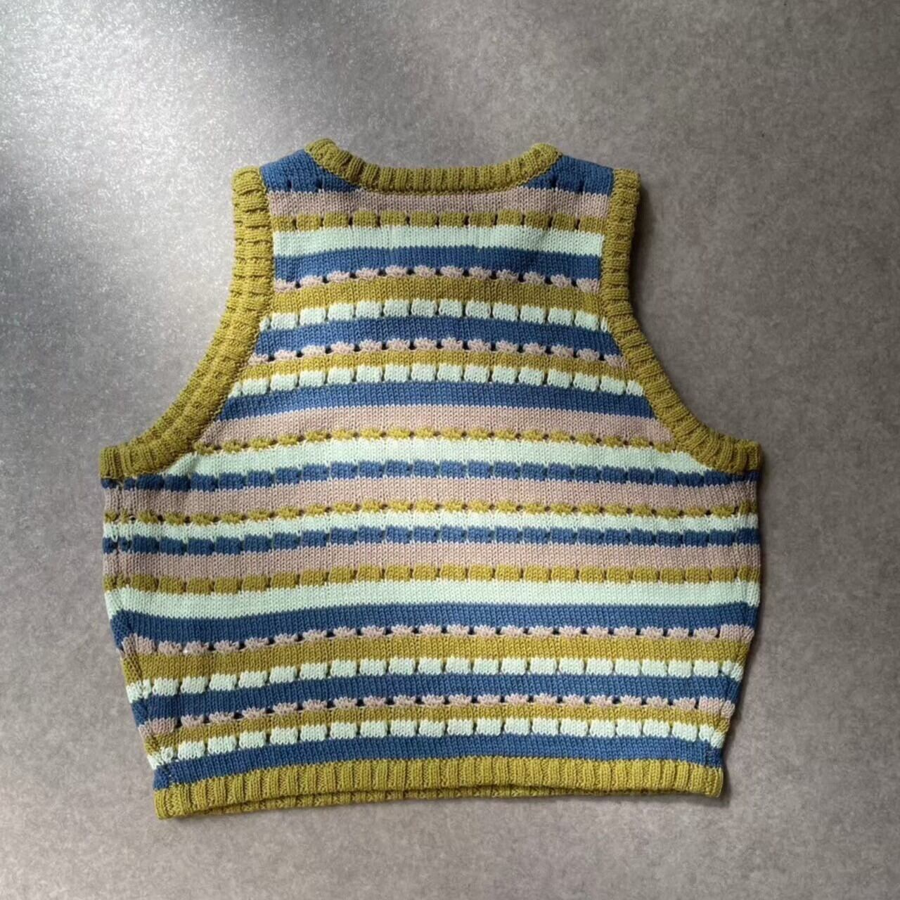 ボーダー透かし編みニット