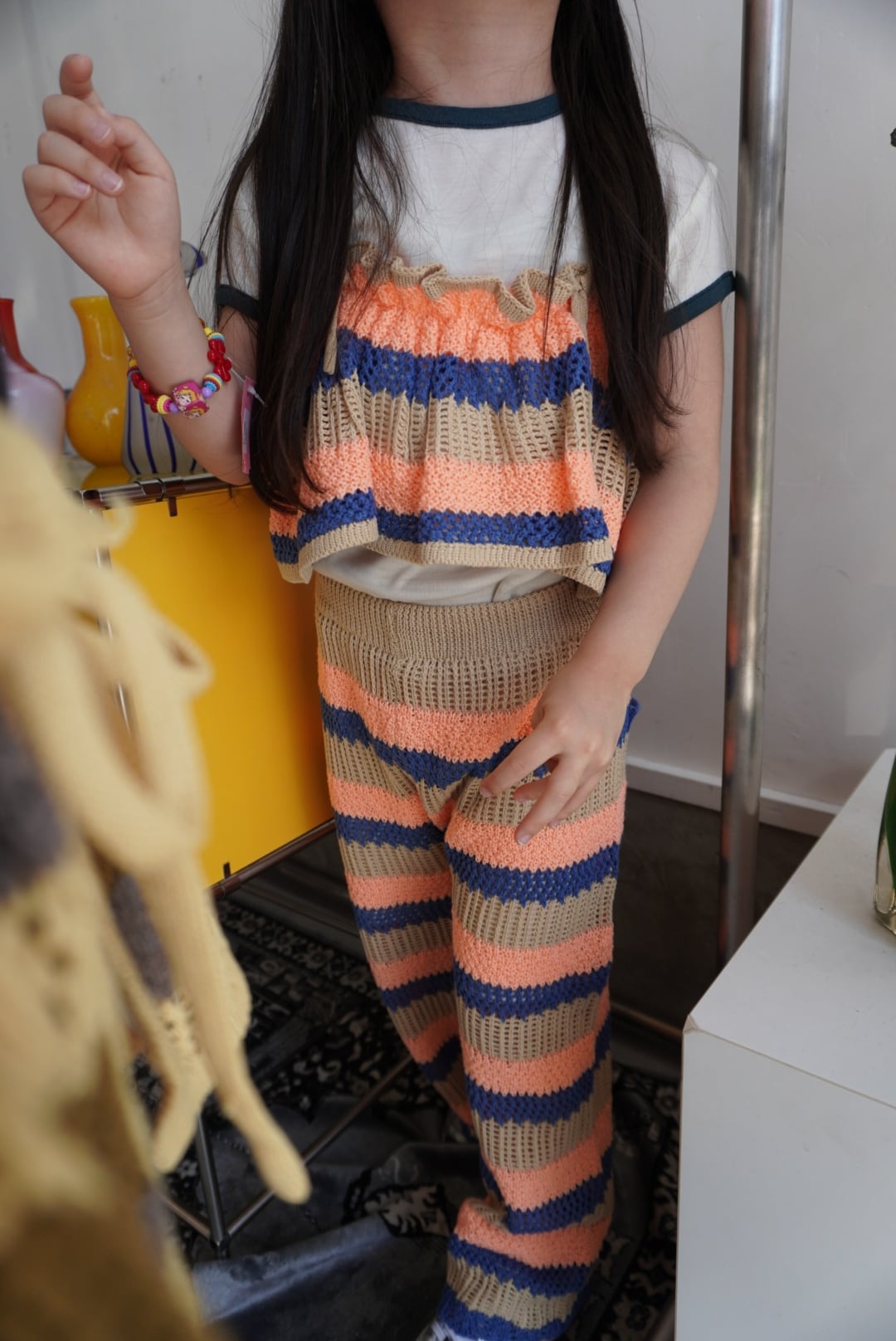 ビスチェ、腰に巻いてニットエプロンに、つけ襟としても♡
